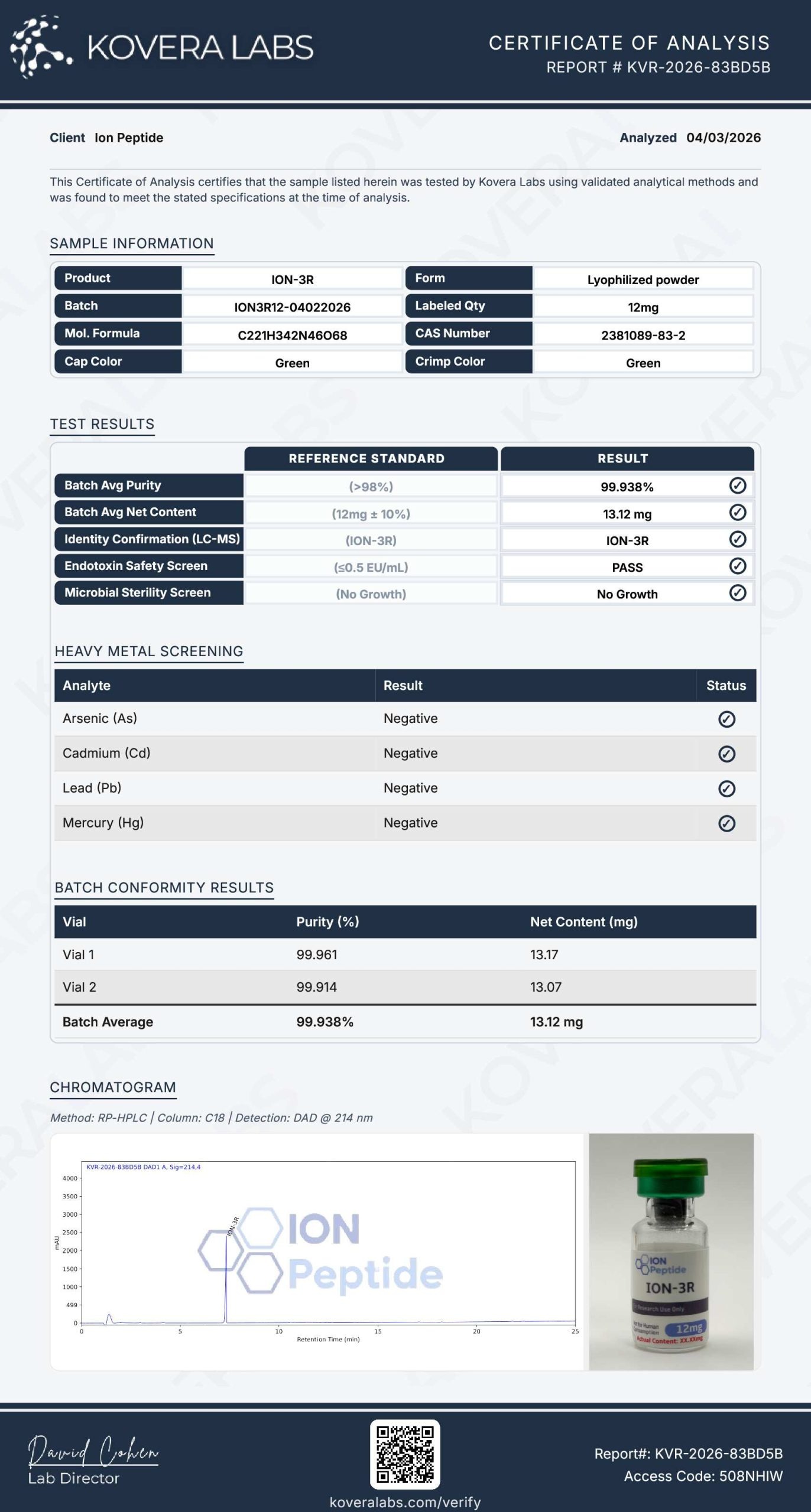 Disclaimer: IonPeptide.com products are for research use only and are not intended for human or animal consumption. They are not approved for medical, diagnostic, or therapeutic use, and no instructions for preparation, administration, or dosage are provided. All products are labeled “For Research Use Only – Not for Human or Animal Use” in accordance with 21 CFR 809.10(c). Statements on this website have not been evaluated by the FDA. Buyers are solely responsible for the lawful handling and use of these products.